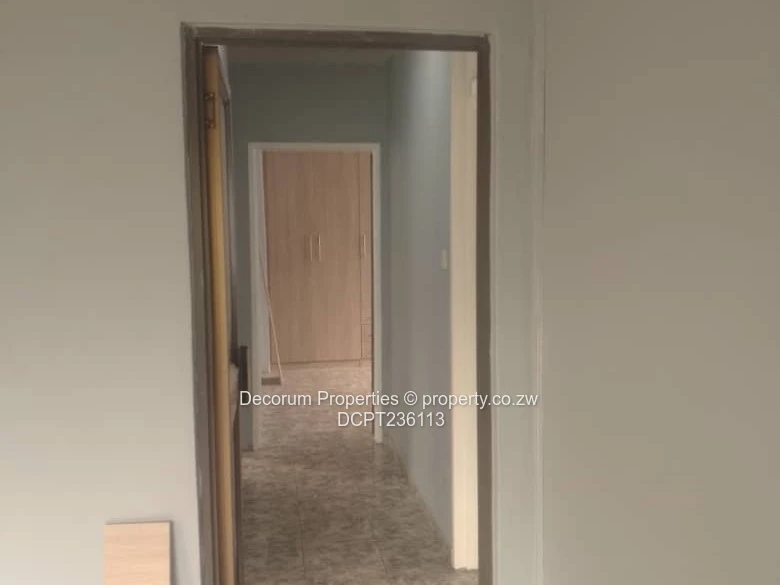 Charming 3-bedroom, 2-bathroom cottage for rent in The Grange, Harare North — freshly renovated and move-in ready. The property sits behind a high, secure boundary wall with attractive brick-inset detailing and a gated paved driveway. Inside, the modern kitchen features light-wood cabinetry, tiled splashbacks, stone-effect countertops and a double sink — perfect for home cooks. Bedrooms include built-in wardrobes and tiled floors; bathrooms are fully tiled and one includes a bathtub for relaxing soaks. Practical extras seen on site: external laundry sink, security bars on windows and a borehole with an elevated water storage tank providing reliable water supply. Clean neutral finishes and contemporary fittings throughout create a bright, comfortable home for a family or professionals seeking convenience and privacy in a well-established Harare North. Rent $900 per month.