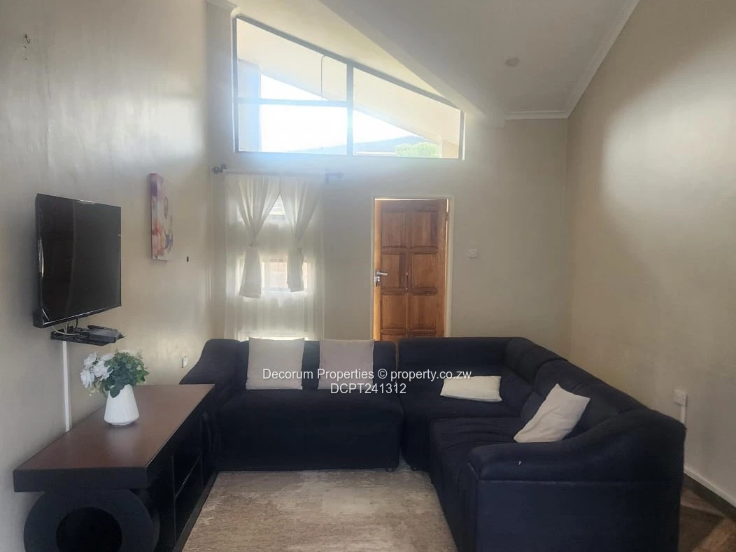 The unit features 2 bedrooms with built-in cupboards, a fully fitted kitchen, tiled floors, and ceiling finishes throughout. It is equipped with a borehole and water tank backup, as well as solar backup power and a solar geyser, ensuring reliable utilities year-round.