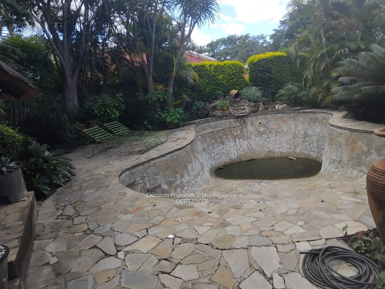 Nestled in the sought-after neighborhood of Glen Lorne, this stunning 5-bedroom split level mansion with BICs offers a perfect blend of luxury and comfort on a sprawling 1-acre property. With ample space for relaxation and entertainment, this home boasts a master en-suite and 2 shared en-suite bathrooms. The interior also features 2 living rooms, a tv room, dining area, and separate lounges plus a light-filled open-plan dining and lounge area on the ground floor. The property also features a double lock up garage, gazebo, staff quarters and a 15kVA backup generator. Step outside to discover a pristine swimming pool, ideal for sunny days, alongside a reliable borehole and a 5 000 liters water tank ensuring your gardens flourish year-round. Embrace a lifestyle of tranquility and convenience in Harare’s vibrant northern suburbs. Experience the perfect retreat just moments from urban amenities. Don't miss this golden opportunity to own your dream home in Glen Lorne! Asking price 650k.